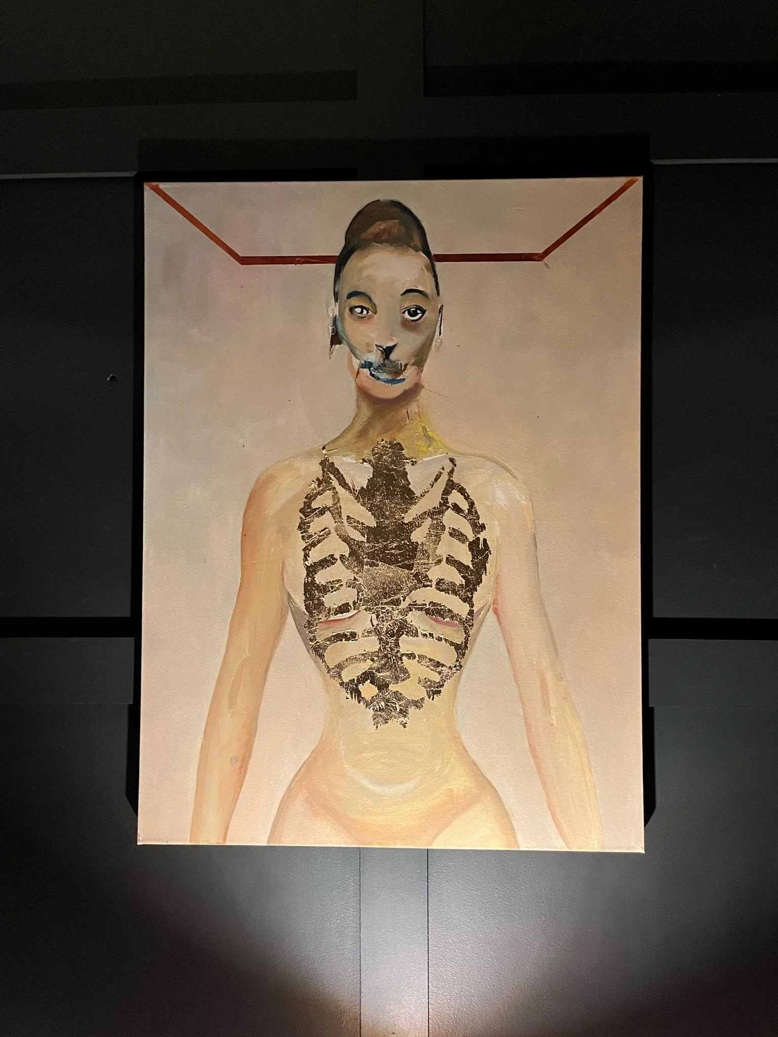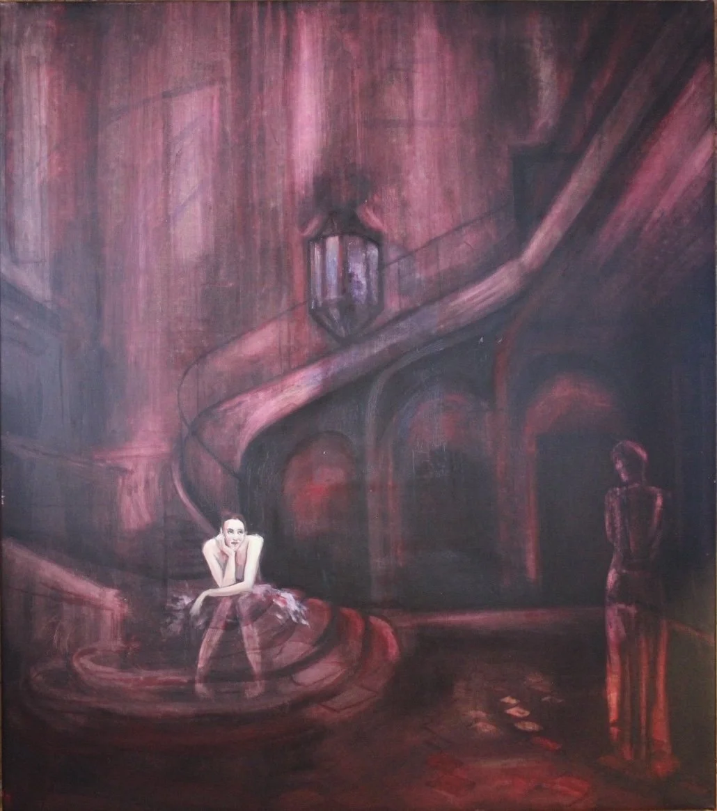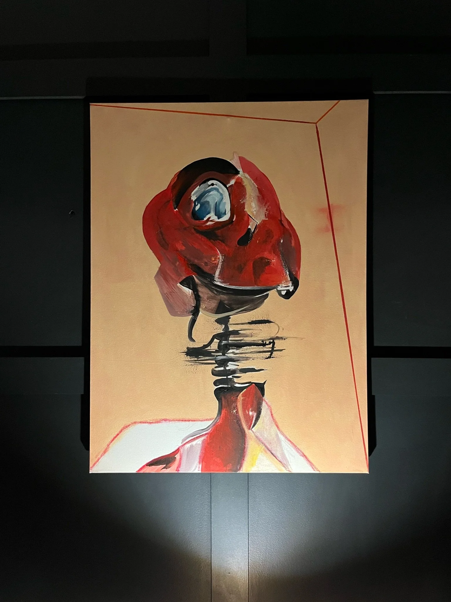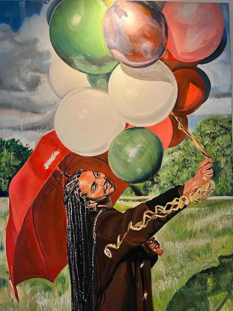 Acrylic, pastel, ink, and spay on paper. (framed)
