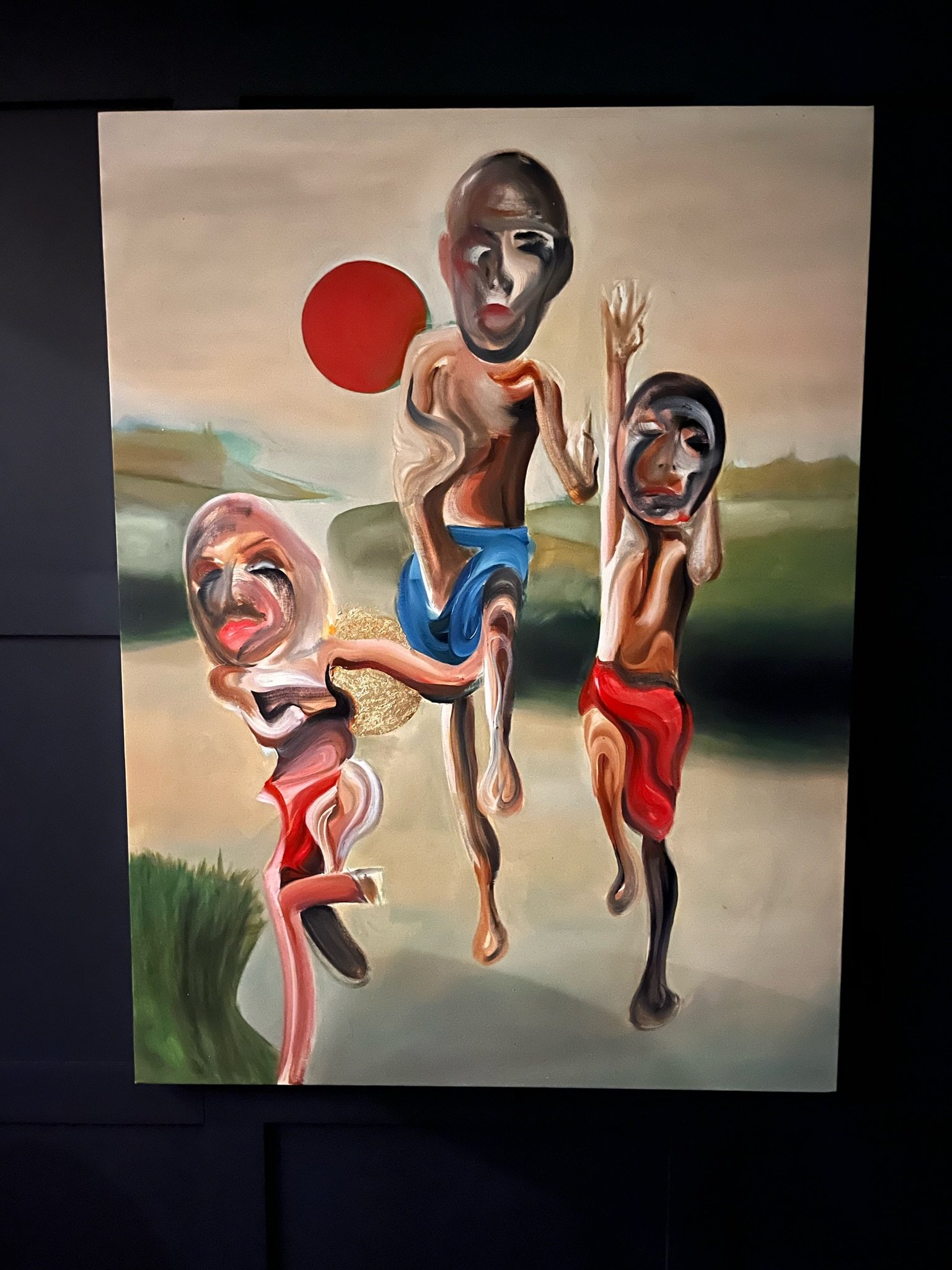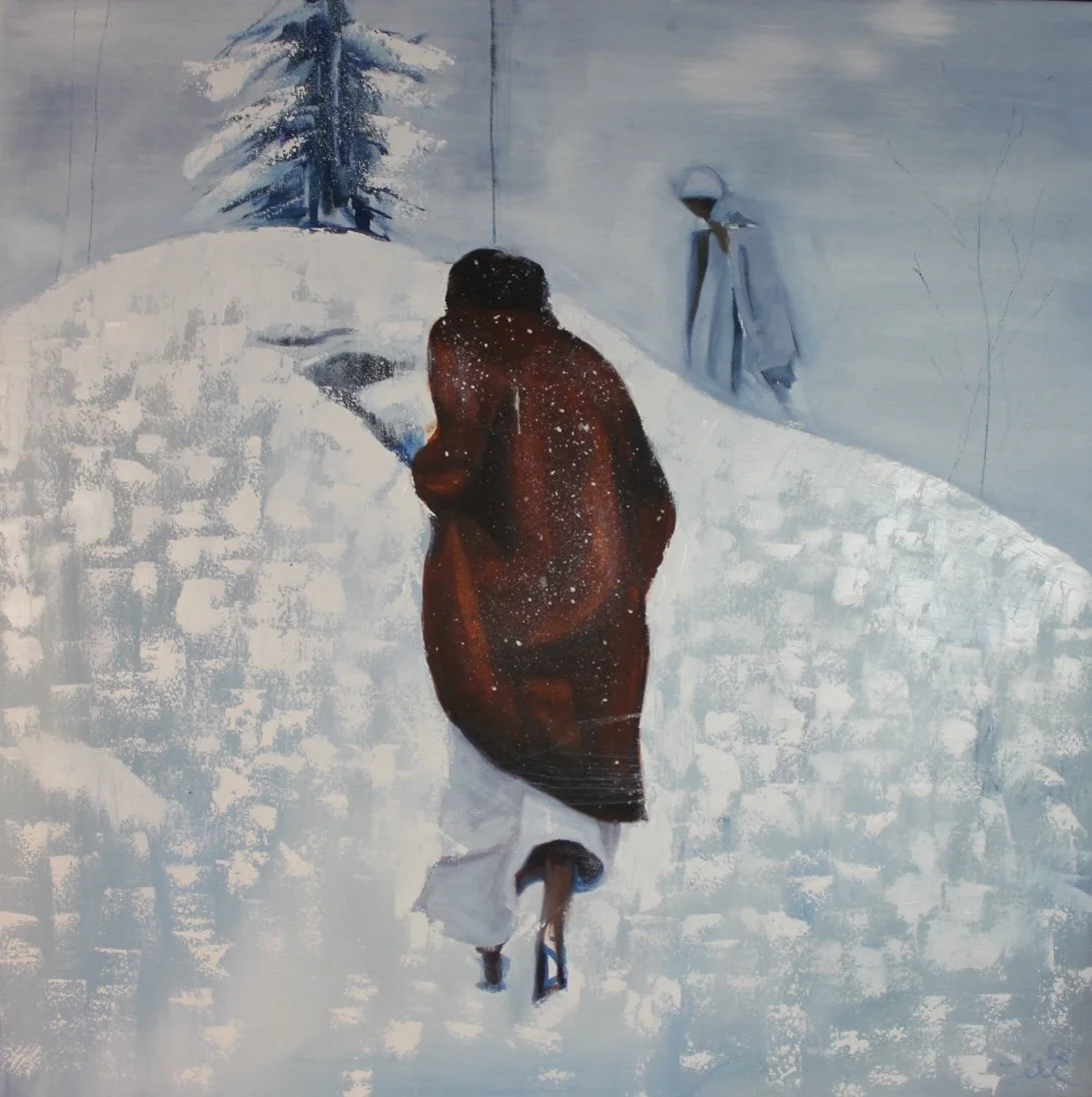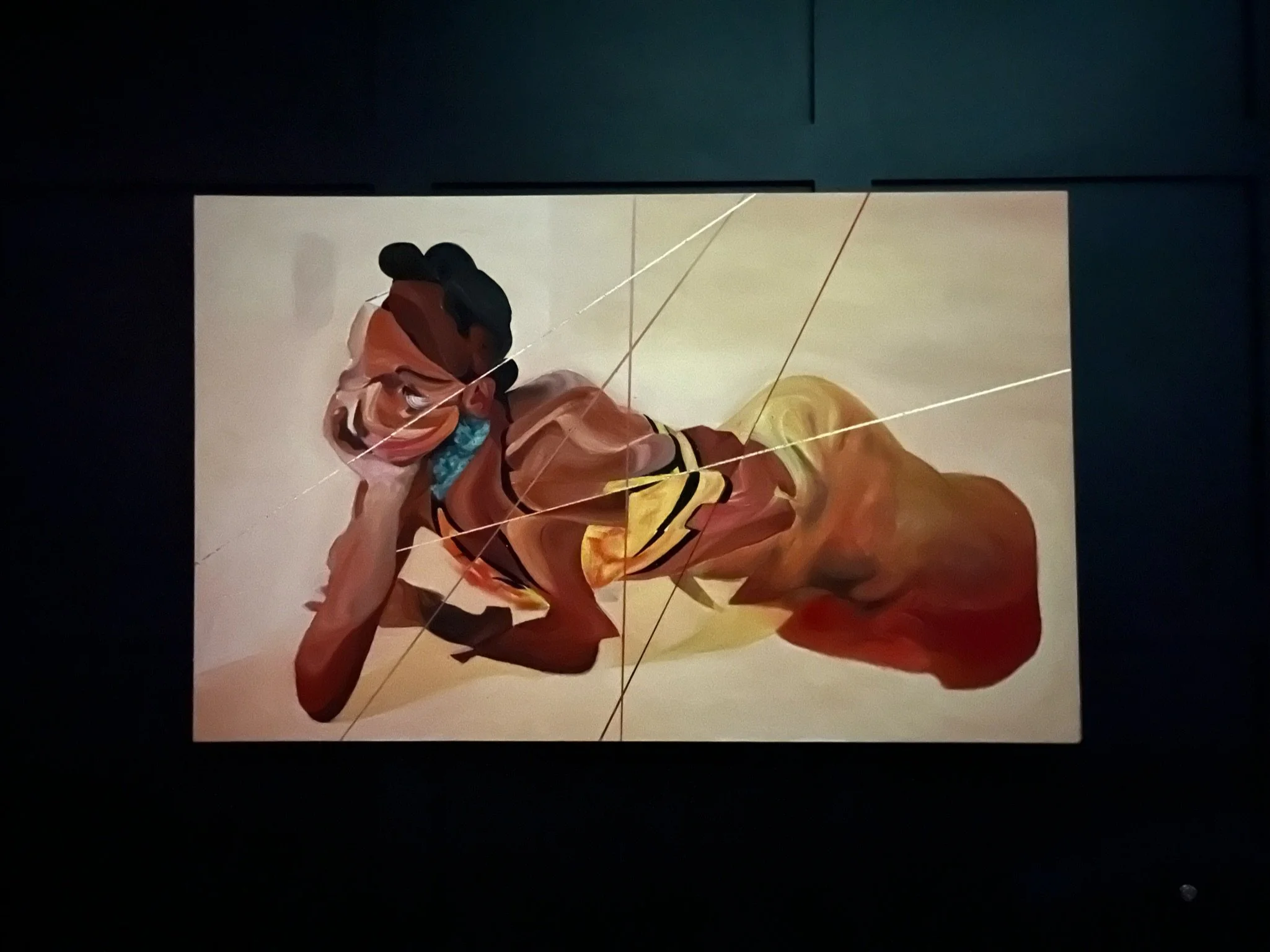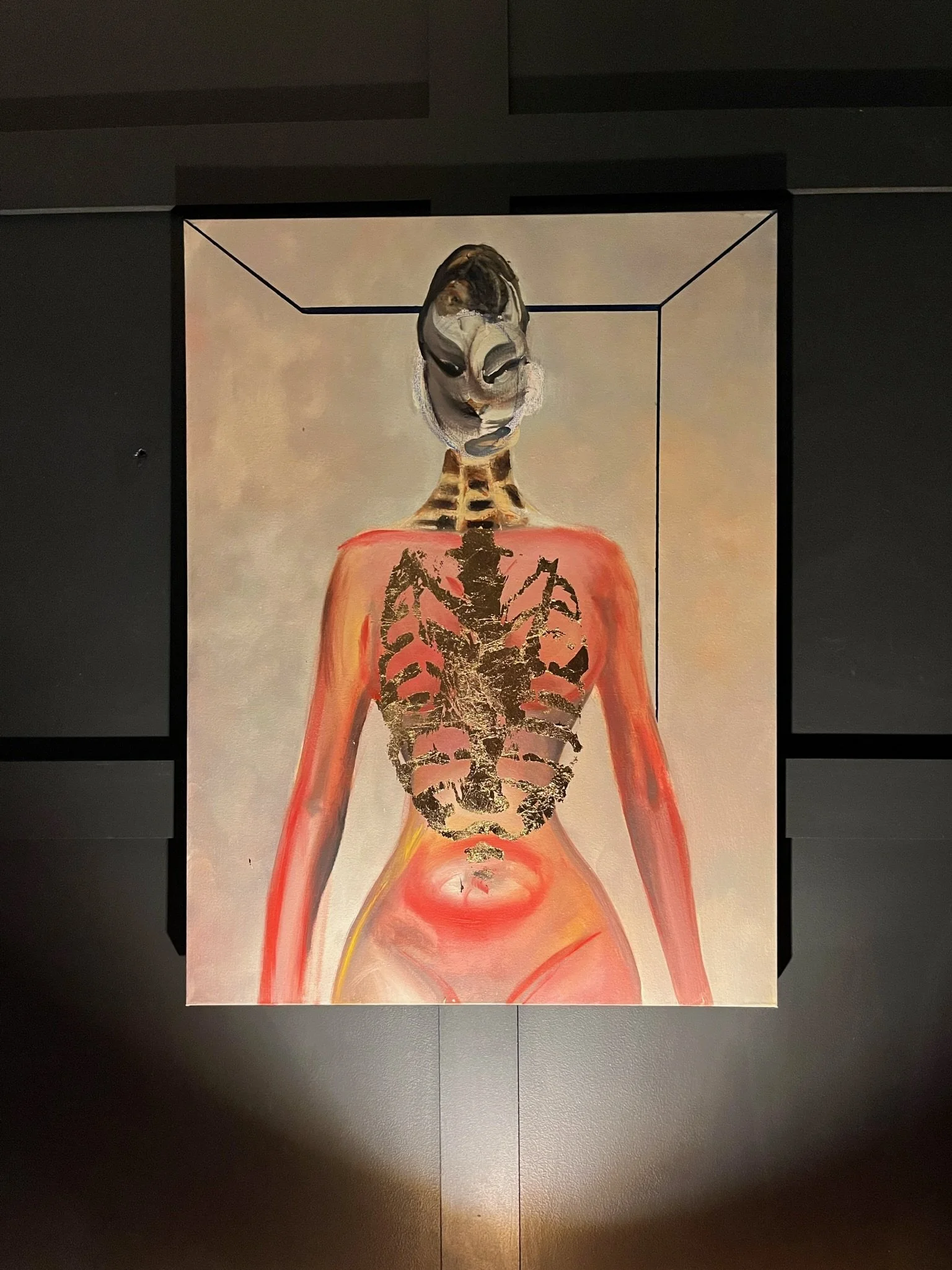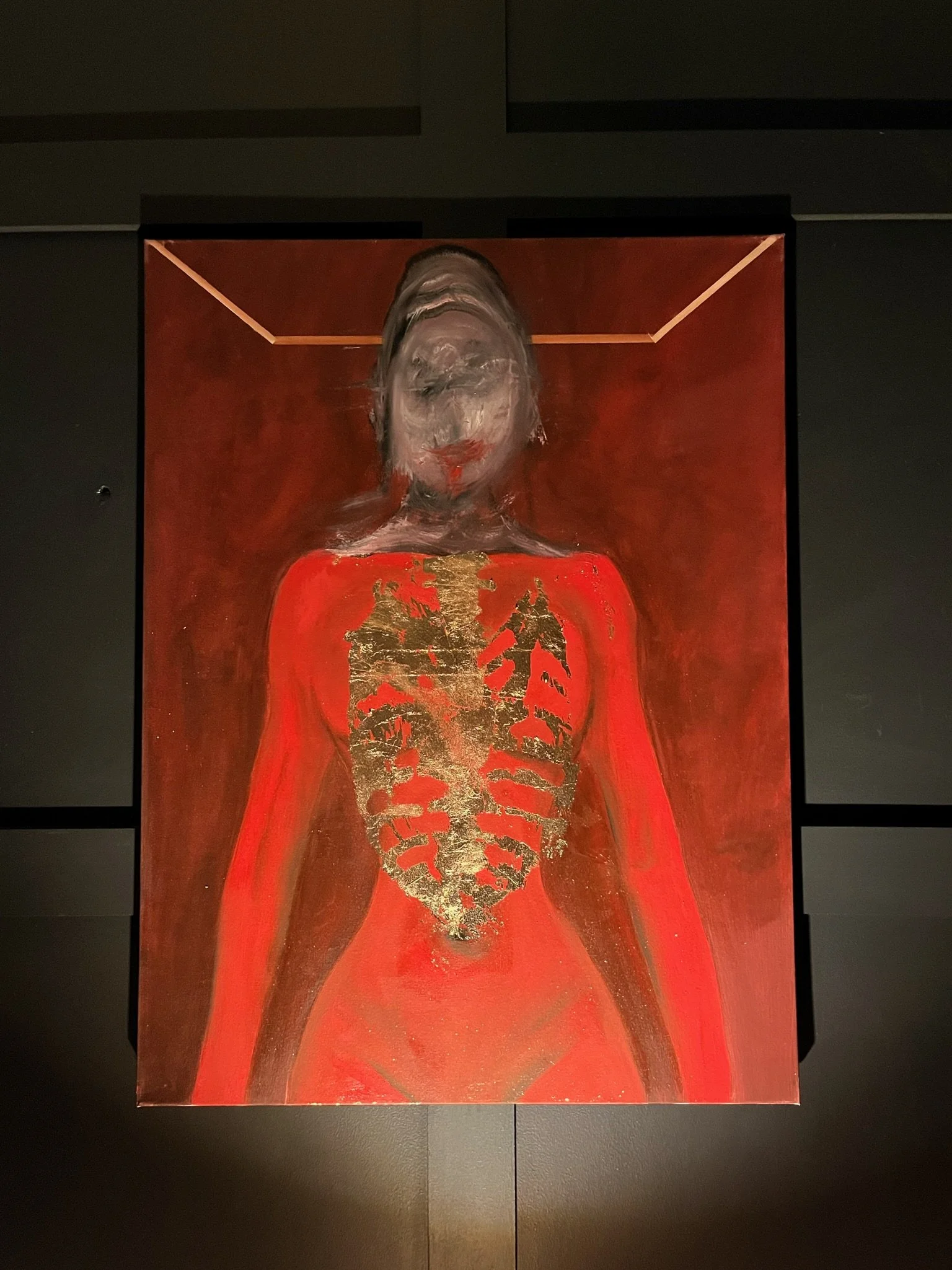 Acrylic, pastel, ink, and spay on paper. (framed)